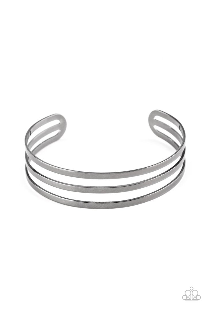 Paparazzi Street Sleek - Black Gunmetal Bar Cuff Bracelet